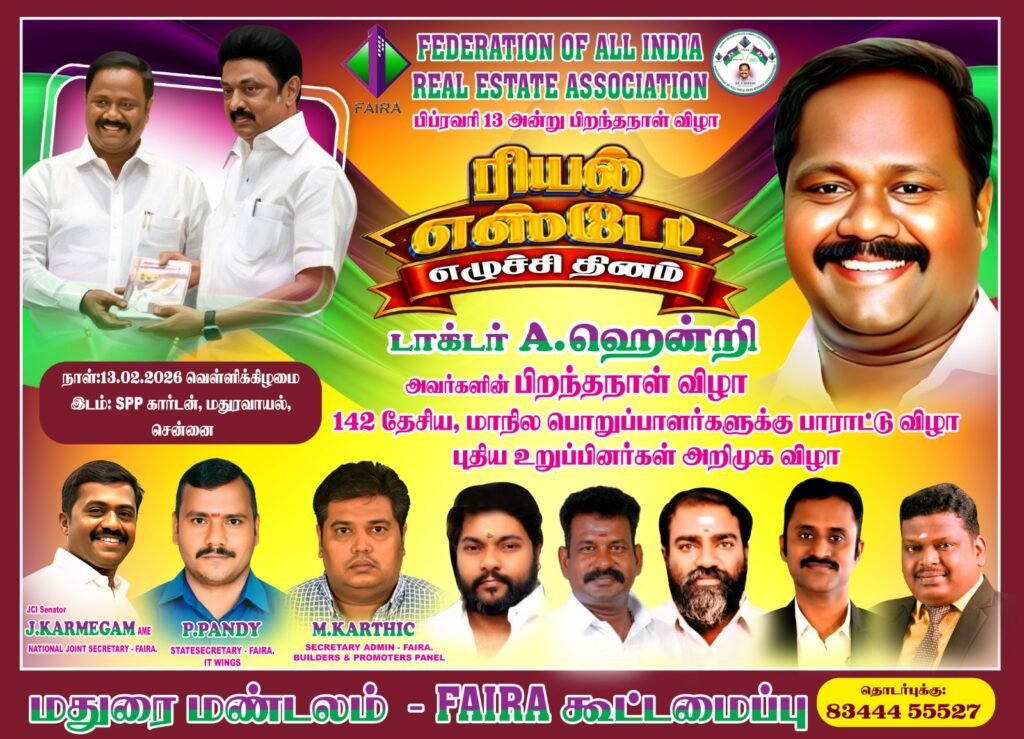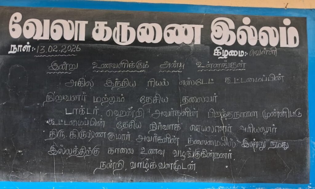 அனைவருக்கும் வணக்கம். விசுவாச வருடம் மாசி மாதம் 2 ஆம் தேதி(14-2-2026) அன்று வேலங்குடி (Near கோட்டையூர் )ஸ்ரீ சொல்கேட்ட விநாயகர் கோவிலில் 11 மணிக்கு அபிஷேக ஆராதனையும் அன்னதானமும் எங்களது குடும்பத்தாரால் ஏற்பாடு செய்யப்பட்டுள்ளது, உறவினர்கள் மற்றும் நண்பர்கள் கலந்து கொண்டு சிறப்பிக்குமாறு அன்போடு கேட்டுக்கொள்கிறோம் இப்படிக்கு – MJF. Dr. S. ராமநாதன்.& Lion RM தனலட்சுமி லயன்.Rm. சொர்ண கார்த்திக் & Lion. நவீனா – Real Value Land Promoters& Builders Pvt. Ltd Coimbatore.