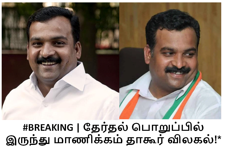 Manickam Tagore அவர்கள் தேர்தல் பொறுப்பில் இருந்து விலகியதாக தகவல் வெளியாகியுள்ளது.