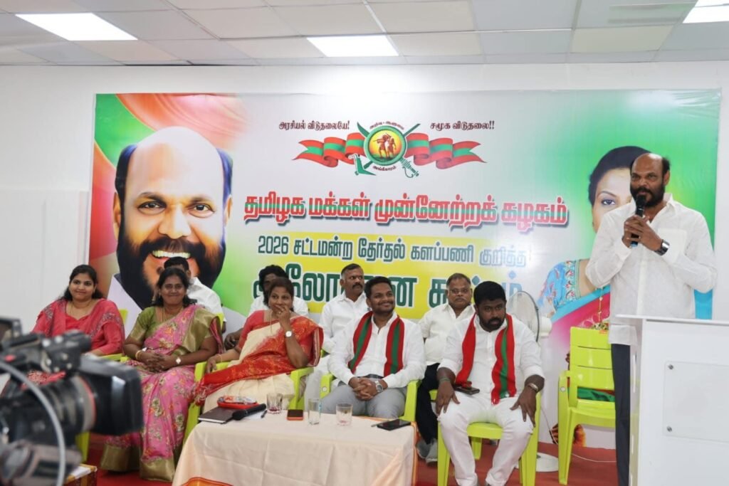 தமிழகச் சட்டமன்றத் தேர்தல் 2026 நெருங்கி வரும் சூழலில், தமிழக மக்கள் முன்னேற்றக் கழகத்தின் மாநில, மண்டல மற்றும் மாவட்ட நிர்வாகிகள் ஆலோசனைக் கூட்டம் இன்று (மார்ச் 28) திருநெல்வேலியில் உள்ள கட்சியின் தென்தலைமை அலுவலகத்தில் எழுச்சியுடன் நடைபெற்றது. தமமுக தலைவர் திரு. ஜான் பாண்டியன் அவர்கள் தலைமையில் நடைபெற்ற இக்கூட்டத்தில், கழகப் பொதுச்செயலாளர் வழக்கறிஞர் முனைவர் திருமதி. ஜா. பிரிசில்லா பாண்டியன் அவர்கள் முன்னிலை வகித்து சிறப்பித்தார். இக்கூட்டத்தில் கட்சியின் எதிர்காலத் திட்டங்கள், தேர்தல் கூட்டணி மற்றும் தொகுதிப் பங்கீடு குறித்து விரிவாக ஆலோசிக்கப்பட்டதாகத் தெரிகிறது. தென் மாவட்டங்களில் கட்சியின் பலத்தை நிரூபிக்கும் வகையில் வரும் தேர்தலில் வியூகம் அமைக்க நிர்வாகிகளுக்கு அறிவுறுத்தப்பட்டுள்ளது.